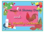 Lack of proper food intake, both in quality and quantity, leads to undernourishment and to sever malnutrition. This is common in poorer communities in the developing world, and when populations are forced to leave their homes and live in difficult circumstances, particularly in children and elderly in refugee camps. A Skinny Duck and a Healthy Cockerel is written for children to learn about food and nutrition. By using the story, teachers can explain different types of food and their functions.